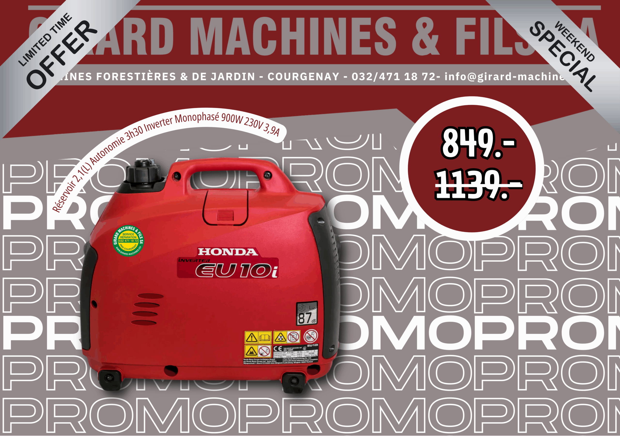 Profitez dès maintenant d’une offre exceptionnelle sur la légendaire Honda EU10i, la génératrice compacte, silencieuse et ultra-fiable — parfaite pour le camping, les escapades en van, les chalets ou les chantiers légers.