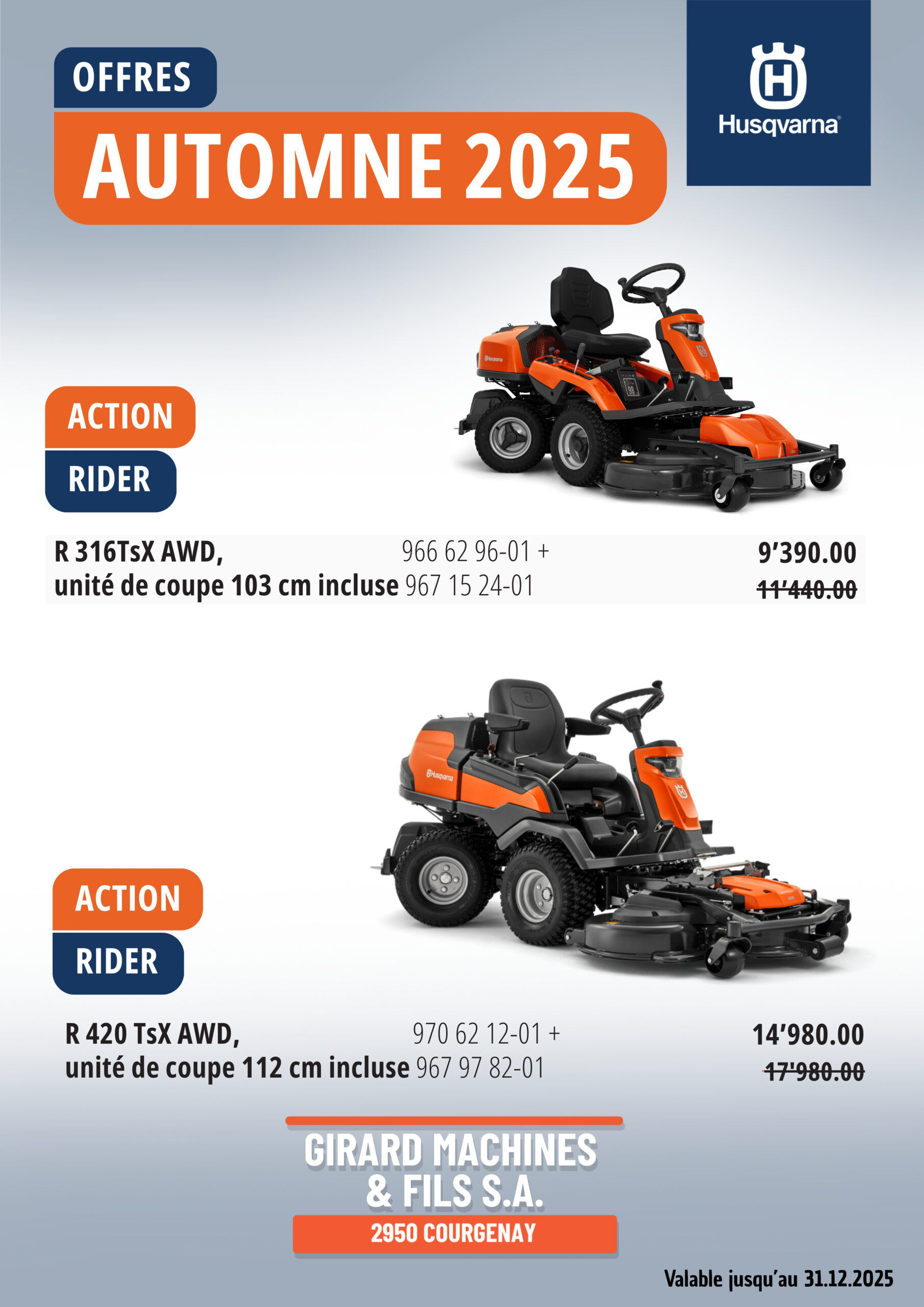 Deux Rider Husqvarna Ă  coupe frontale encore dispo dans notre expo.